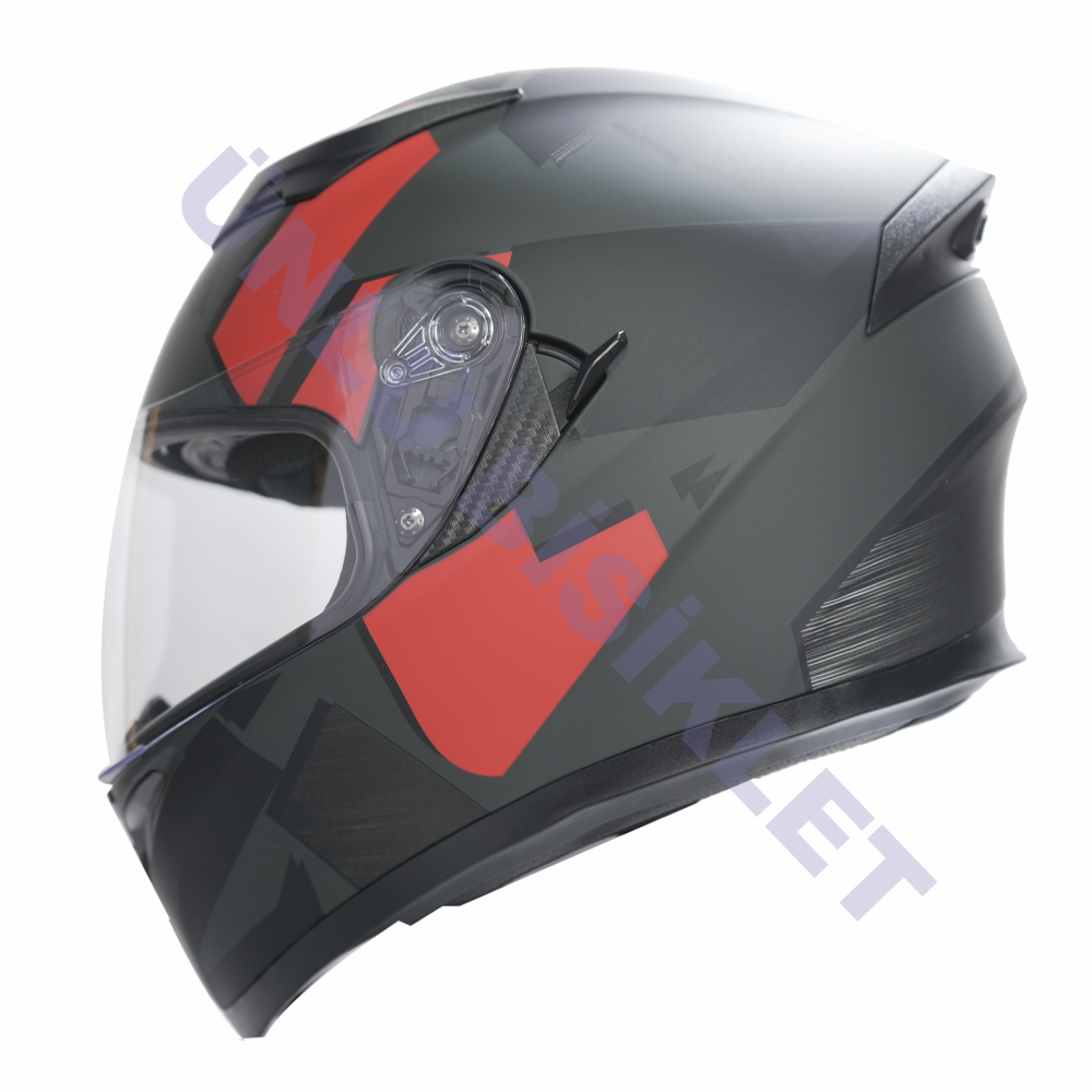 KC-KAPALI VİZÖRLÜ KASK [KC316-1] MAT SİYAH - KIRMIZI [XL] E BELGELİ