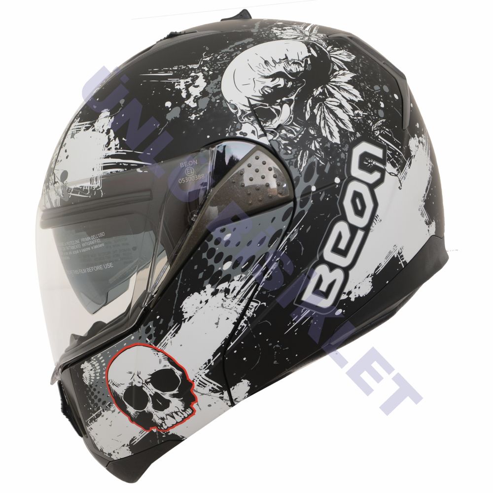 BEON- ÇENE AÇILIR VİZÖRLÜ KASK [B700] [SİYAH -KURU KAFA DESENLİ] [L]