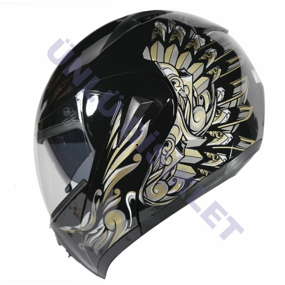 VRT - ÇENE AÇILIR VİZÖRLÜ KASK [MD-808] [SİYAH - GOLD] [M]